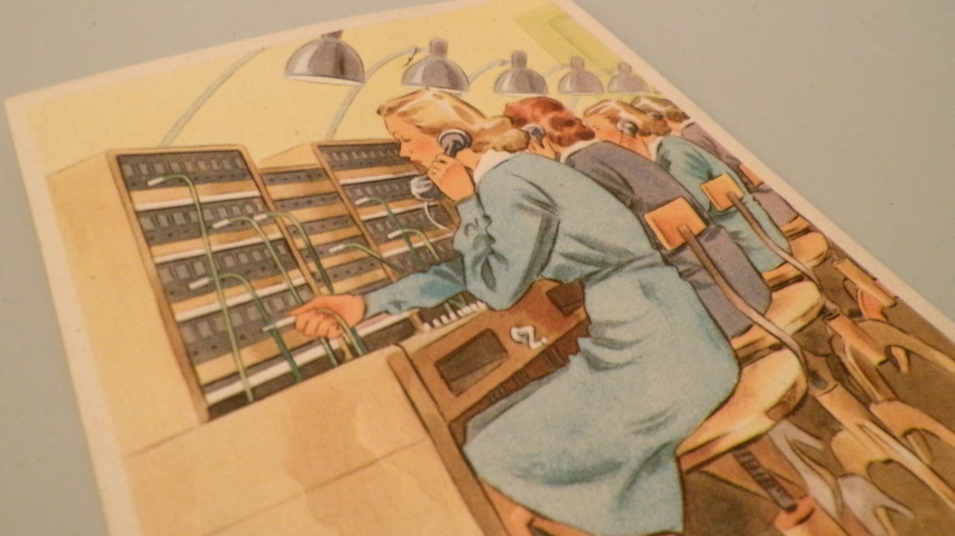 "Die Fernsprechbeamtin" (the telephone operator), Nr. 667, from the series "Frauen schaffen Für Euch" (Women getting the job done for you) Perfectly preserved with no signs of wear.