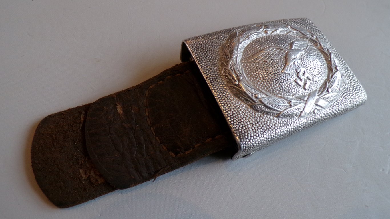 Luftwaffe buckle with tongue, executed in aluminum. Nice text book example of a rare maker "F.R" 38 which is Franz Reichenauer Oberstein 1938