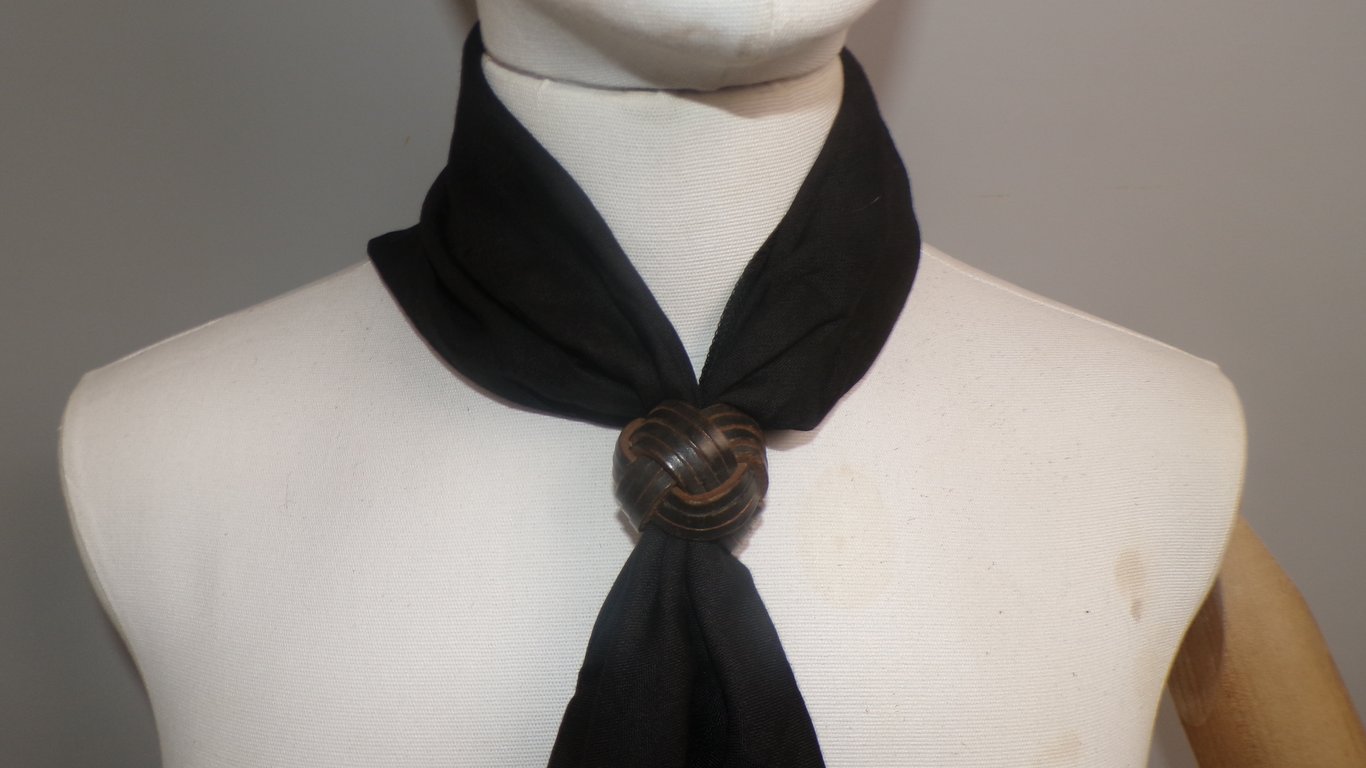 *The Hitler Youth scarf was a plain black, triangular neckerchief, and the knot was a brown, woven leather woggle used to secure it. These items were a key part of the compulsory uniform for boys and girls in the Nazi youth organizations and were presented in a formal ceremony after members passed a physical and ideological test. The scarf was a standard part of the uniform for both the Hitlerjugend (boys) and the Bund Deutscher Mädel (League of German Girls). *