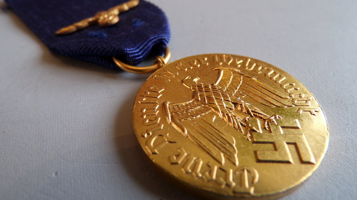 The "Wehrmacht Long Service Medal 12 Years" was the Wehrmacht's 3rd Class Long Service Award, bestowed upon military personnel for twelve years of loyal and exemplary service. The award was instituted by Adolf Hitler on March 16, 1936, to honor military personnel for long service in the newly formed Wehrmacht (Army, Navy, and Air Force). The 12-Year Service Medal was the third of four main classes (4 years, 12 years, 18 years, and 25 years). It was a round, gilded medal, often made of gilded steel or bronze. The obverse depicted the German Imperial Eagle clutching a movable swastika in its talons, surrounded by the inscription in Gothic script: "Loyal Service in the Wehrmacht."