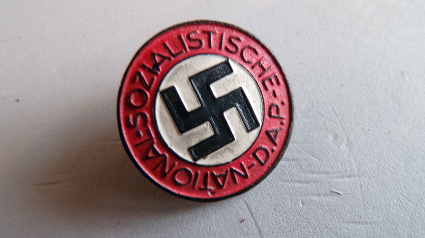 The NSDAP membership pin (Parteiabzeichen) was a badge worn by all members of the Nazi Party, typically on the lapel of civilian clothes or uniforms. It is a well-known historical artifact associated with Nazi Germany.
