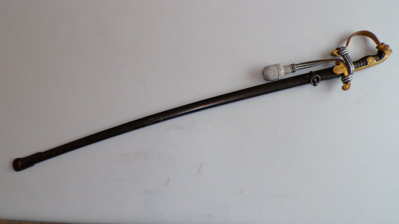 A panther head officer's sword is a specific, ornate model of ceremonial sword, most famously associated with the German Army (Heer) officers during the Third Reich (Nazi Germany) era (1933-1945). The most defining feature is the highly detailed pommel sculpted in the shape of a panther's (or sometimes ambiguously a lion's or leopard's) head. These hilts often included inset faceted red glass eyes. Various Solingen-based sword manufacturers produced these, including prominent names like Carl Eickhorn, E. Pack & Sohne, Anton Wingen Jr., and Alcoso (Alexander Coppel Solingen). The hilt fittings were typically made of brass or aluminum, often fire-gilded or silver-plated for a high-shine finish. The grips were usually black celluloid wrapped tightly with silver or brass wire. The crossguard or langet (the shield-shaped part of the guard) usually featured an open- or half-closed-wing Wehrmacht-style eagle clutching a swastika, identifying it as an Army officer's presentation piece. Some SS variations existed with SS runes on the langet. These were regulation dress uniform items for officers and senior NCOs, worn on specific formal occasions like parades. They were primarily ceremonial rather than combat weapons.