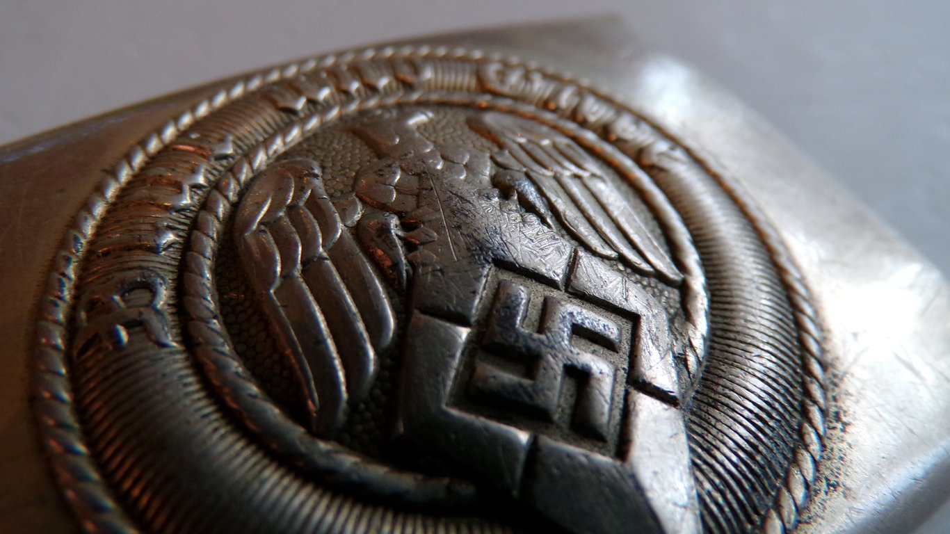 Motto: Encircling the eagle and emblem was the motto "Blut und Ehre" (Blood and Honour), often in a Gothic script. This phrase emphasized the Nazi values of loyalty, duty, and commitment to the regime. Material: Early buckles were often made of nickel silver or brass, later transitioning to aluminum and eventually steel as materials were redirected for the war effort. By 1936, membership in the Hitler Youth (Hitlerjugend or HJ) was compulsory for eligible young Germans, and the uniform, including the belt and buckle, became a symbol of adherence to Nazi ideology. Original buckles typically had a reverse side marked with the RZM logo (Reichszeugmeisterei, or National Equipment Quartermaster) and a manufacturer-specific code (e.g., M4/44, M4/38, M4/72). The buckles were often taken home by Allied soldiers as war trophies and are now considered historical relics by museums and collectors of World War II militaria. Museums and historical organizations typically do not support or condone the Nazi party, but display these items for their historical significance.