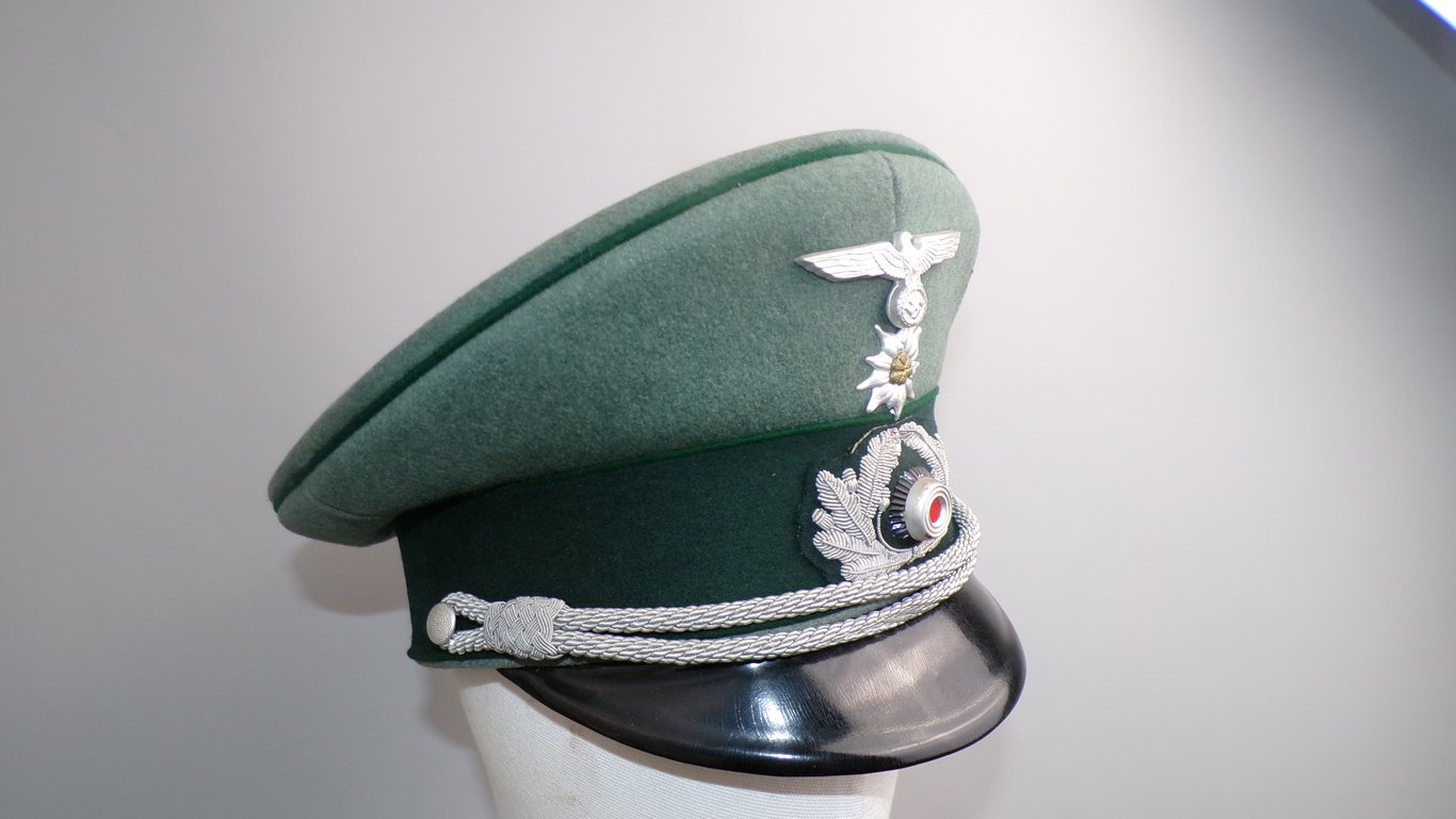 A Schirmmütze is a German peaked or visor cap characterized by its distinct stiffened crown and forward-facing brim (the "Schirm" or visor). While the term simply means "peaked cap" in modern German, it is most frequently associated with military and paramilitary uniforms from the Imperial German era through World War II. Features an oval wool crown supported by a wire stiffener to create a "saddleback" shape, a semi-rigid band often in a contrasting color (like bottle-green), and a visor made of vulcanized rubber, fiber, or leather.