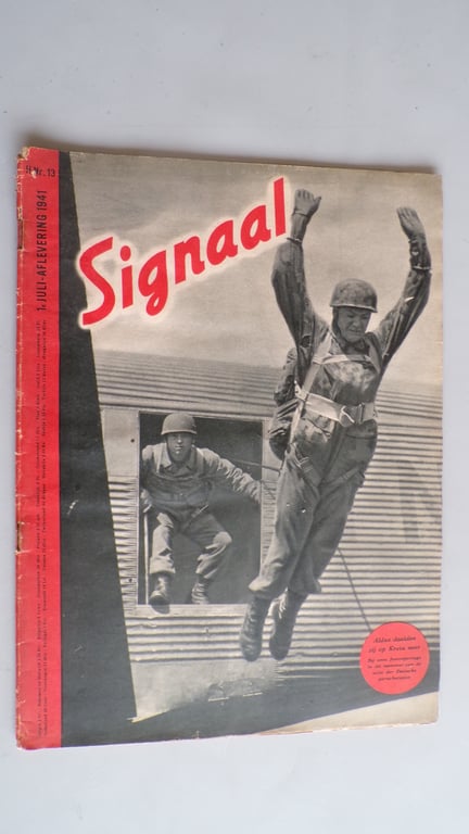 Signal was an illustrated photo journal and the primary international propaganda magazine of Nazi Germany during World War II. Published by the Wehrmacht (German military) from 1940 to 1945, it was specifically designed for audiences in neutral, allied, and occupied countries rather than for the German domestic public. It was known for its high-quality production, featuring large-format photographs and extensive use of color photography (via Agfacolor), which was rare and technologically advanced for the time. At its peak in 1943, it had a circulation of approximately 2.5 million copies per issue. It was published fortnightly in as many as 30 languages, including English, French, Dutch, and Russian.While primarily distributed in occupied Europe and Axis-aligned nations, an English version was available in the United States until December 1941. The magazine focused on portraying a "New Order" for a unified Europe under German leadership. Beyond military reports, it included lifestyle articles on science, arts, women's fashion, and advertisements for German companies like BMW and Agfa. Promoted by the chief of the Wehrmacht Propaganda Troops, Colonel Hasso von Wedel, the magazine aimed to present a sanitized, heroic image of the German military. It often highlighted the supposed modernity and success of German forces while downplaying the tragedies of war. As the war turned against Germany after 1943, its tone shifted from "brash optimism" to stories of "sensationalist heroism" to mask the Reich's decline.