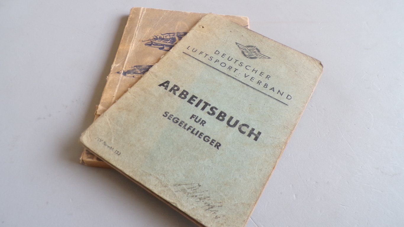 A nice and complete documented logbook from a D.L.V "pilot", starting June 1937 and ended December 1939. A "glider pilot's logbook" is a historical document formerly issued by gliding clubs (such as the German Air Sports Association) that served as a kind of logbook and training record to document flight data, takeoffs, landings and training progress, comparable to a modern flight logbook, but often with more focus on training and membership in the 1930s. This lot also includes a pocket booklet published in 1941, which described in detail all then-known enemy aircraft and explained how to identify them.