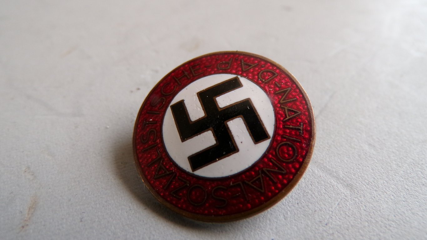 The NSDAP membership pin (Parteiabzeichen) was a badge worn by all members of the Nazi Party, typically on the lapel of civilian clothes or uniforms. It is a well-known historical artifact associated with Nazi Germany.