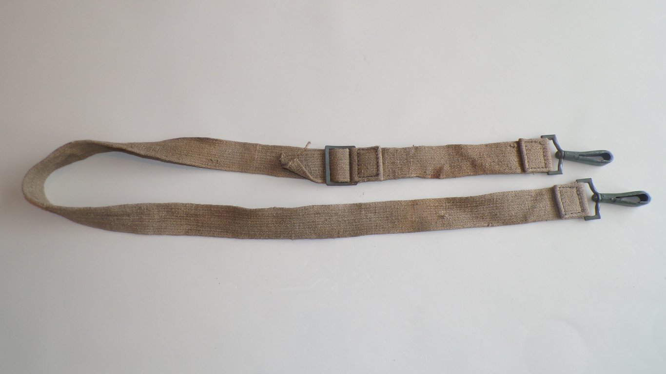 Original example of a Tragegurt 34, These straps were used for both the Patronenkasten 34 (aluminum or steel) and the later Patronenkasten 41 (steel) ammunition boxes. It consists of an adjustable strap with hooks at each end. Very good near mint condition. Rare!
