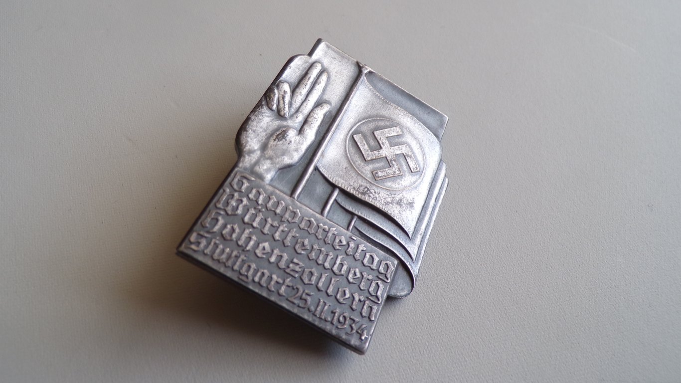 A very nice Gauparteitag Württemberg Hohenzollern Stuttgart 25.2. 1934 treffen pin, made from buntmetall.