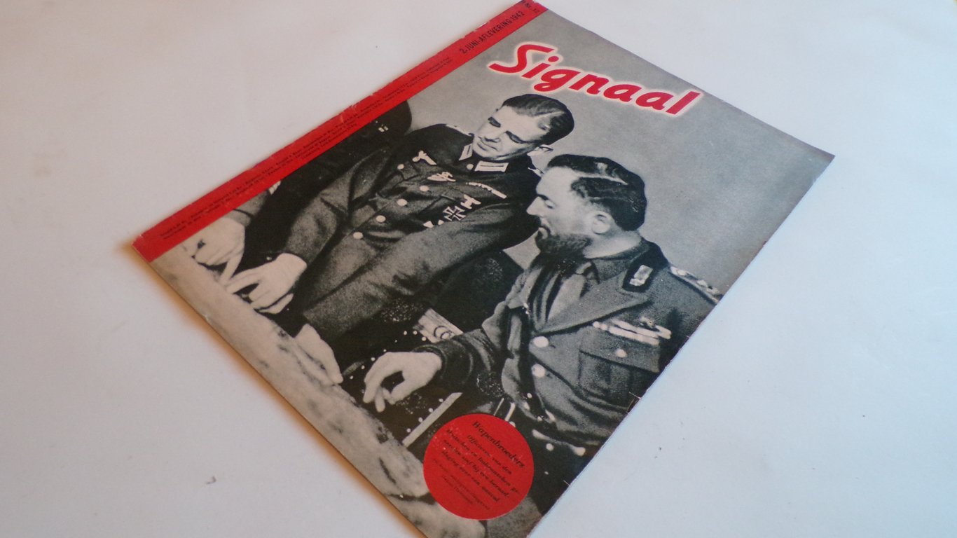 Signal was an illustrated photo journal and the primary international propaganda magazine of Nazi Germany during World War II. Published by the Wehrmacht (German military) from 1940 to 1945, it was specifically designed for audiences in neutral, allied, and occupied countries rather than for the German domestic public. It was known for its high-quality production, featuring large-format photographs and extensive use of color photography (via Agfacolor), which was rare and technologically advanced for the time. At its peak in 1943, it had a circulation of approximately 2.5 million copies per issue. It was published fortnightly in as many as 30 languages, including English, French, Dutch, and Russian.While primarily distributed in occupied Europe and Axis-aligned nations, an English version was available in the United States until December 1941. The magazine focused on portraying a "New Order" for a unified Europe under German leadership. Beyond military reports, it included lifestyle articles on science, arts, women's fashion, and advertisements for German companies like BMW and Agfa. Promoted by the chief of the Wehrmacht Propaganda Troops, Colonel Hasso von Wedel, the magazine aimed to present a sanitized, heroic image of the German military. It often highlighted the supposed modernity and success of German forces while downplaying the tragedies of war. As the war turned against Germany after 1943, its tone shifted from "brash optimism" to stories of "sensationalist heroism" to mask the Reich's decline.