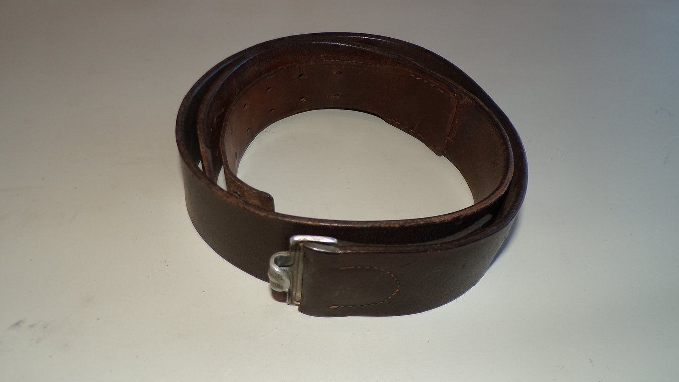 A beautiful chocolate brown leather belt. Produced by the company A. Jeurgens from Goch in 1939. It has a maker marked aluminum catch. The belt is stamped "I/Flak Regiment 26." A rare and beautiful belt, 86 cm long.