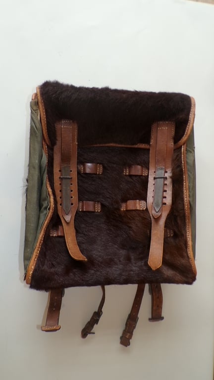 *A German WWII signals Tornister is a specialized, often cowhide-covered, backpack (or frame-mounted pack) used by the Nachrichtentruppe (Signal Corps) to carry field telephones, radio components, cable reels, and tools. Known as the "Affe" (monkey) for its shape, these packs facilitated communication for infantry and field units, featuring specialized internal pockets. Specifically designed for communication personnel to transport delicate technical gear, rather than standard personal infantry equipment. They were often modified versions of the M34 "Affe" pack, frequently featuring hair-on cowhide for waterproofing, though later war models used canvas. They featured specialized compartments for wire, tools, and, in some cases, the Fernsprechtornister (field telephone pack) was used. Some signal backpacks were designed specifically to hold components of radio sets like the Torn. Fu. d2 (VHF transmitter/receiver). They existed in three main, specially-fitted, internally-divided versions to hold different types of equipment. They were used by the Wehrmacht and Waffen-SS for frontline, or near-frontline, communications. The term Tornister can also refer to the "Tornister-Fu" (Torn. Fu.) series, which were the portable man-pack radios themselves rather than just the pack carrying them. *