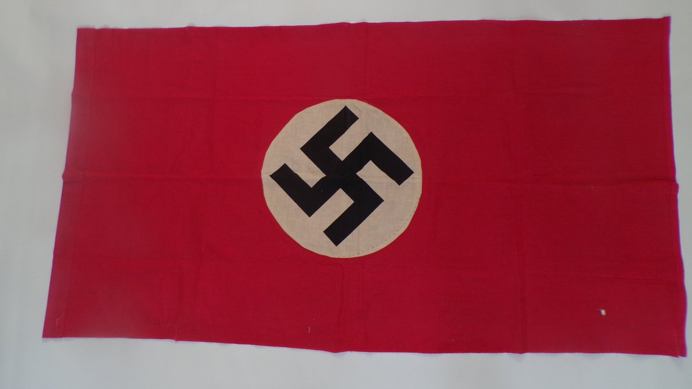 A Nazi Party Banner (or flag) is the iconic symbol of the Nationalist Socialist German Workers' Party (NSDAP). The banner was designed by Adolf Hitler in 1920 and later became the official national flag of Nazi Germany from 1935 to 1945. Hitler described its design and meaning extensively in his book Mein Kampf: A bright red field, which Hitler believed represented the social thought of the Nazi movement. A white circle in the middle that symbolized the nationalist thought. A black swastika in the middle of the white disc. Hitler saw this as the symbol of the "Aryan struggle" and the victory of "creative labor" (which he explicitly defined as anti-Semitic). The combination of red, white and black was a deliberate reference to the flag of the old German Empire, with which the Nazis distanced themselves from the democratic Weimar Republic.