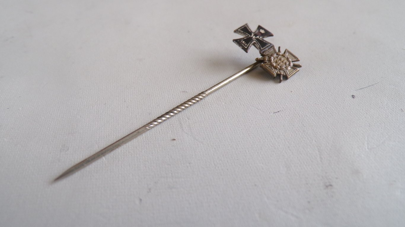 A stickpin with 2 decorations: the Ehrenkreuz für Frontkämpfer and the Iron Cross . They are 9 mm and are attached together on a long pin. The Iron Cross is very detailed.