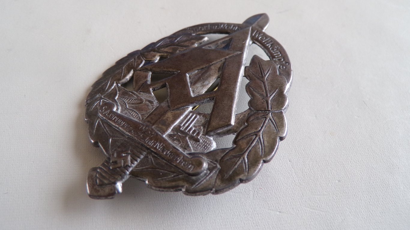 Held by the S.A Gruppe on the 24th and 25th of Juli 1937 in Niederrhein. Good worn condition with the original needle on the back.