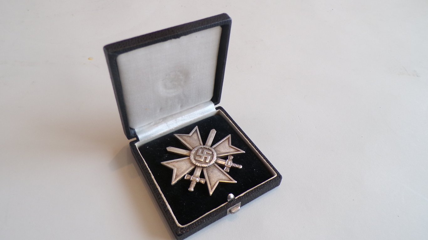 The Kriegsverdienstkreuz (KVK), or War Merit Cross, was a German military decoration instituted by Adolf Hitler on October 18, 1939, shortly after the start of World War II. This award was intended to recognize merits that did not qualify for the more prestigious Iron Cross, such as brave acts not performed under direct enemy fire, or merits of military leadership outside the immediate front line. With Swords (mit Schwertern): Awarded to service members for merit at the front or in combat-related roles.