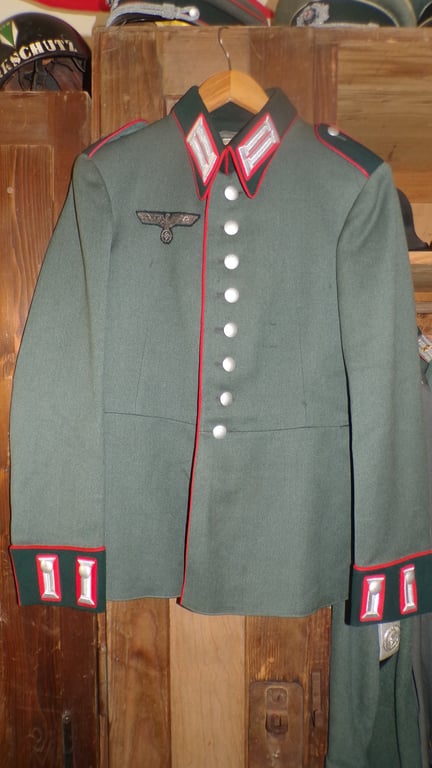 This is truly a stunning jacket in very good condition. A very nice tailor's label is still sewn in. There are two loops on the left breast for attaching a medal. Apart from the bird, I would call it mint. The photos speak for themselves. A nice addition to any collection.
