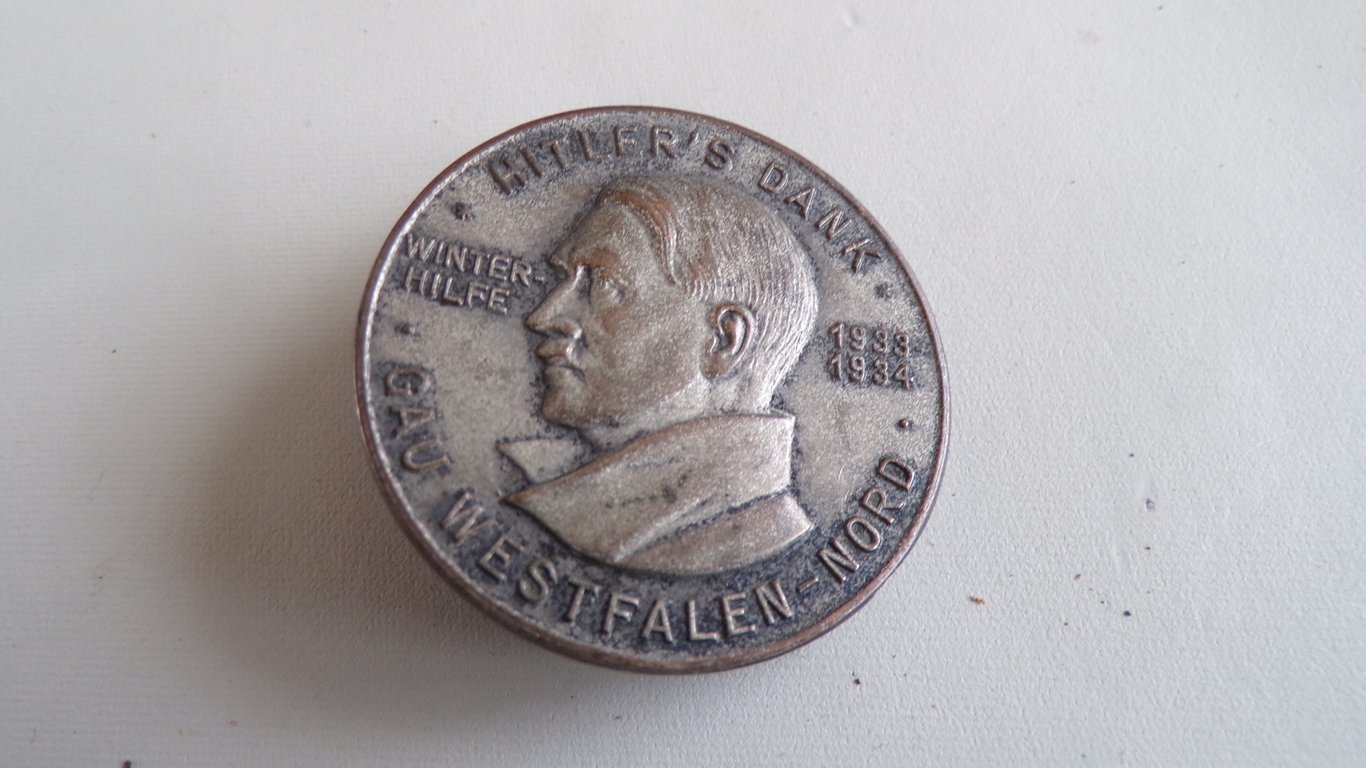 **The Winterhilfswerk (Winter Relief) was established in 1933 to provide food, clothing, and coal to impoverished Germans during the winter months. To encourage donations, small commemorative badges and medals known as "tinnies" were given to contributors. These early 1933-1934 badges from Gau Westfalen-Nord are historically significant as they represent the very first national campaign of the WHW.